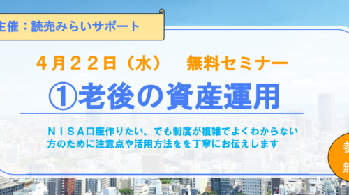 【4月22日 無料セミナー】①老後の資産運用