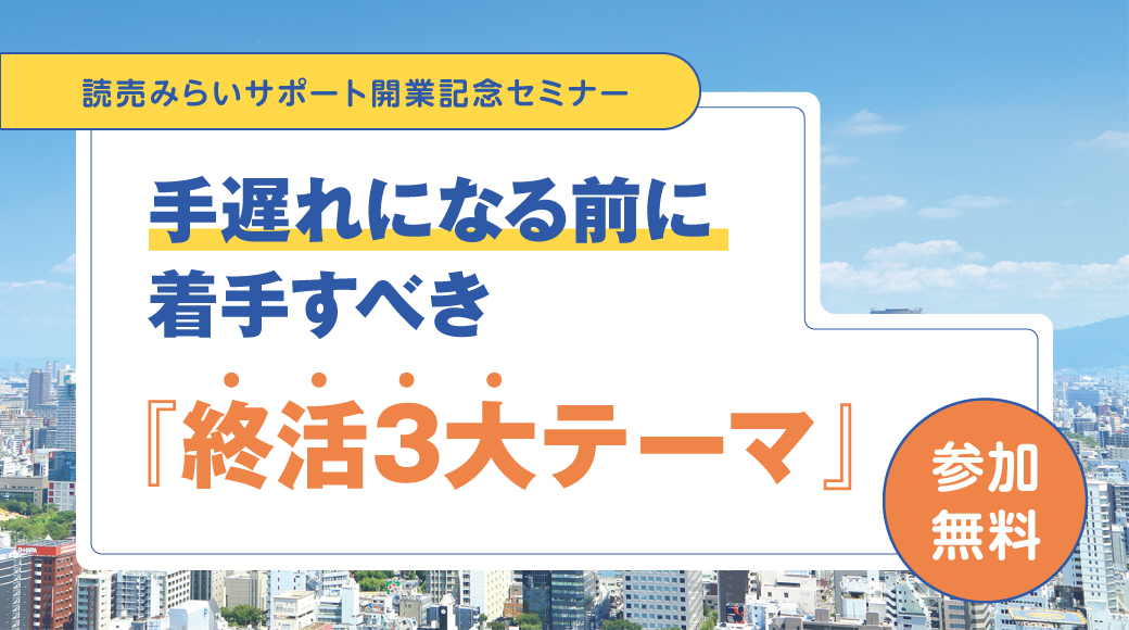 これを記念し参加費無料のセミナー「手遅れになる前に着手すべき『終活3大テーマ』」を読売新聞大阪本社で開きます。