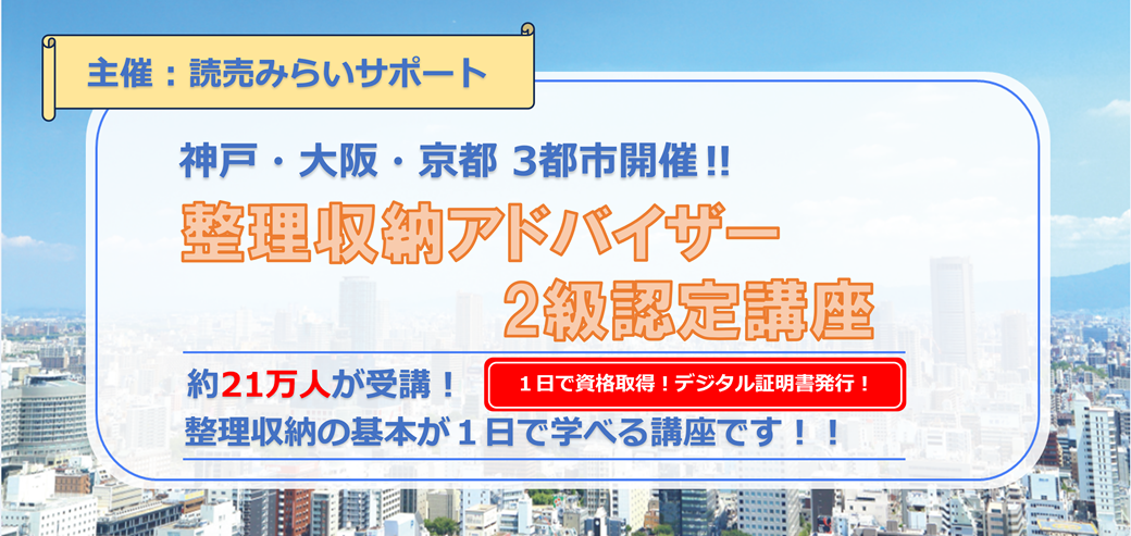 整理収納アドバイザー2級認定講座 【神戸・大阪・京都開催】